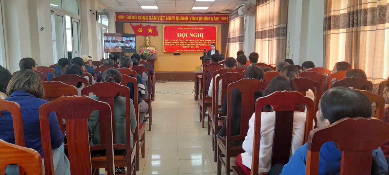 Sáng ngày 30/11, Ban Thường vụ Đảng uỷ phường Hải Bình đã tổ chức hội nghị học tập Nghị quyết Đại hội đại biểu Đảng bộ tỉnh Thanh Hoá lần thứ XX, nhiệm kỳ 2025-2030 và Nghị quyết Đại hội đại biểu phường Hải Bình lần thứ nhất, nhiệm kỳ 2025-2030.