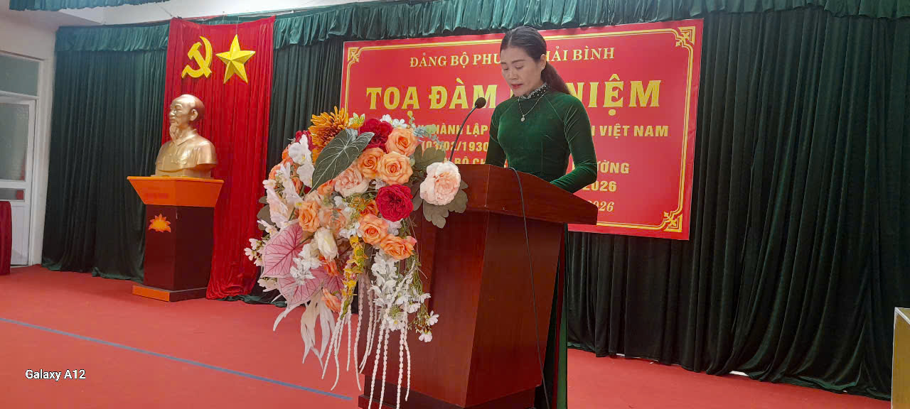 Đồng chí Dương Thị Hằng, phó Bí thư Thường trực đảng uỷ phường Hải Bình thông qua diễn văn kỷ niệm 96 năm ngày thành lập Đảng cộng sản Việt Nam ( 3/2/1930-3/2/2026).