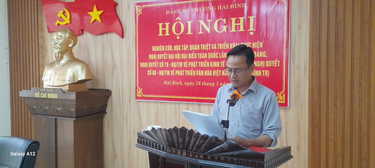 Đảng uỷ phường Hải Bình tổ chức hội nghị học tập, quán triệt, triển khai Nghị quyết đại hội lần thứ 14 của đảng. Nghị quyết số 79 và Nghị quyết số 80 của Bộ chính trị.