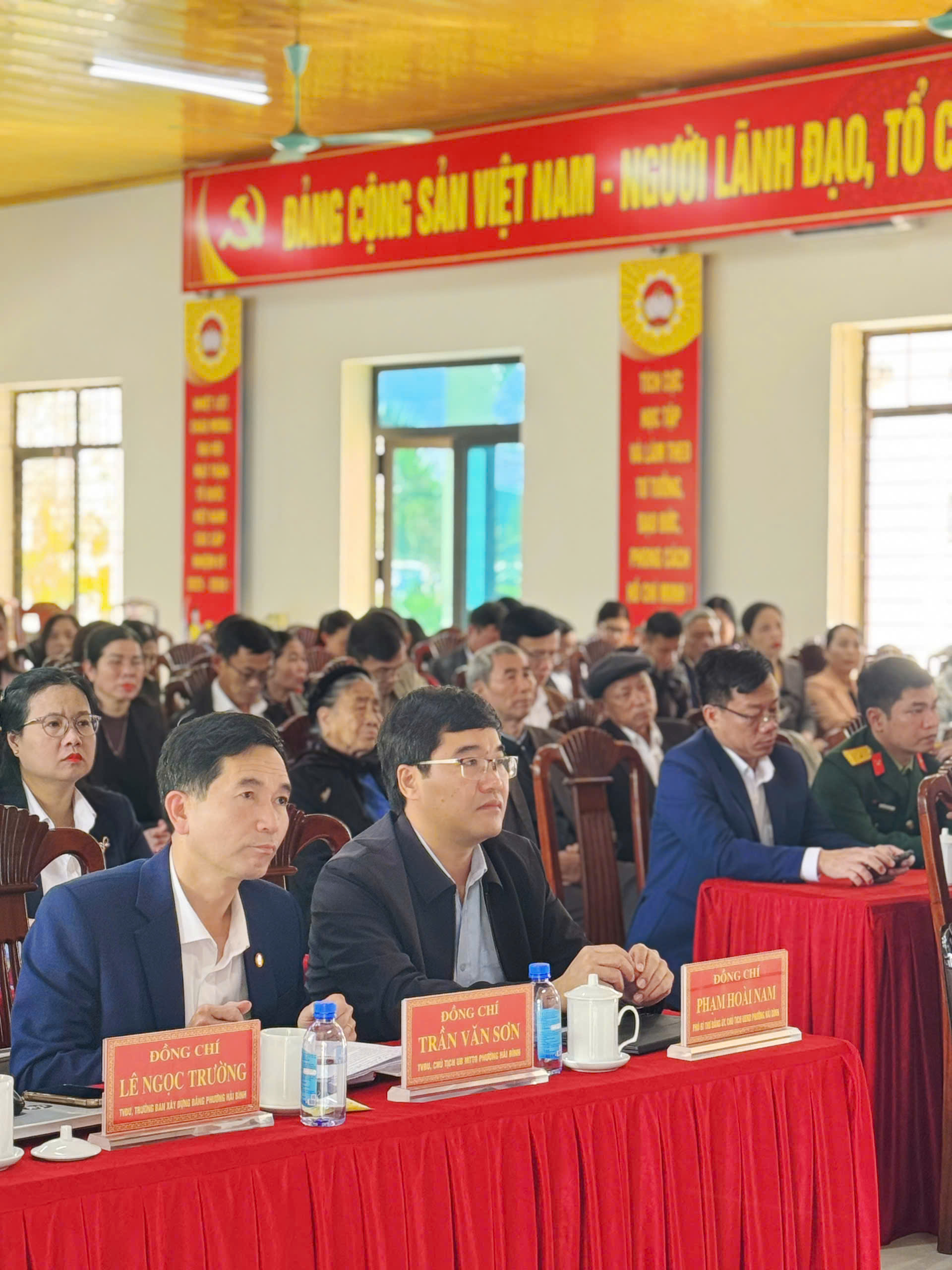 Tới dự buổi lễ có đồng chí Nguyễn Quốc Đạt, Bí thư Đảng ủy, chủ tịch HĐND phường Hải Bình; đồng chí Dương Thị Hằng, Phó bí thư thường trực Đảng ủy phường; đồng chí Phạm Hoài Nam, phó Bí thư Đảng ủy, chủ tịch UBND phường. Các đồng chí Ủy viên Ban thường vụ đảng ủy, Ủy viên Ban chấp hành đảng bộ phường. Trưởng, phó các phòng ban. Bí thư, phó bí thư các Đảng bộ, chi bộ trực thuộc và các đồng chí đảng viên được trao tặng huy hiệu.