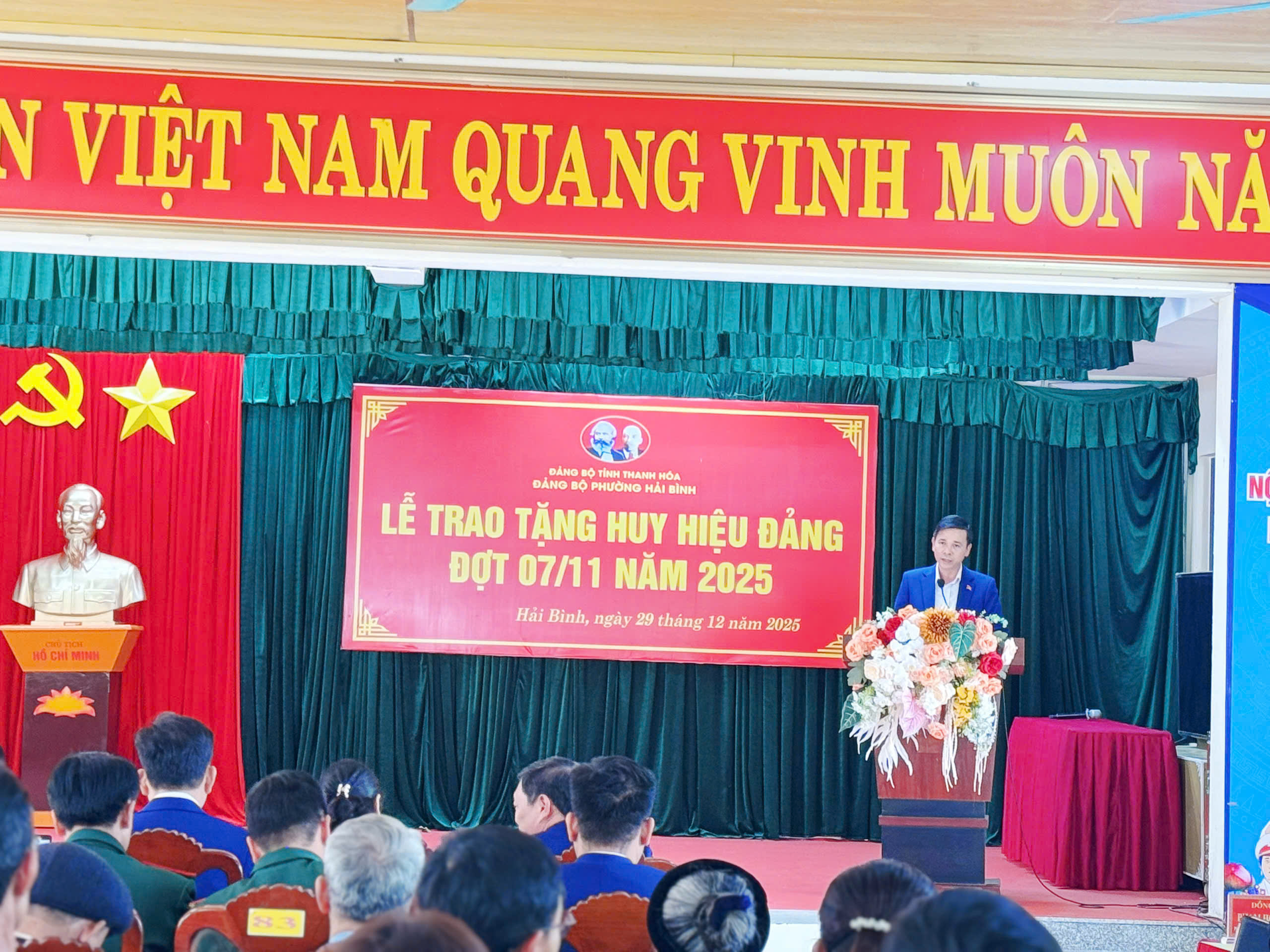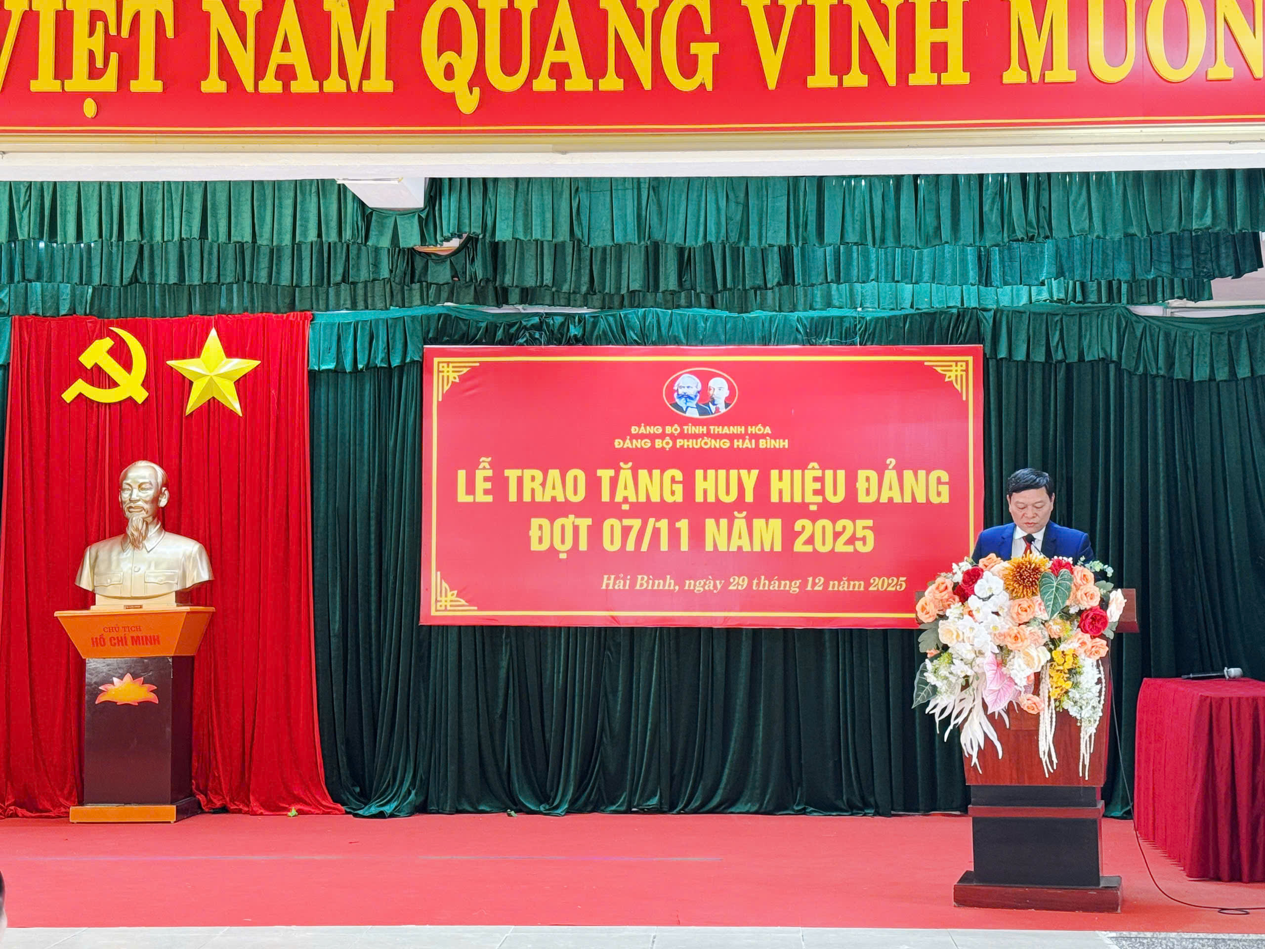 Đảng ủy phường Hải Bình trang trọng tổ chức trao tặng huy hiệu Đảng đợt 7 tháng 11 năm 2025.