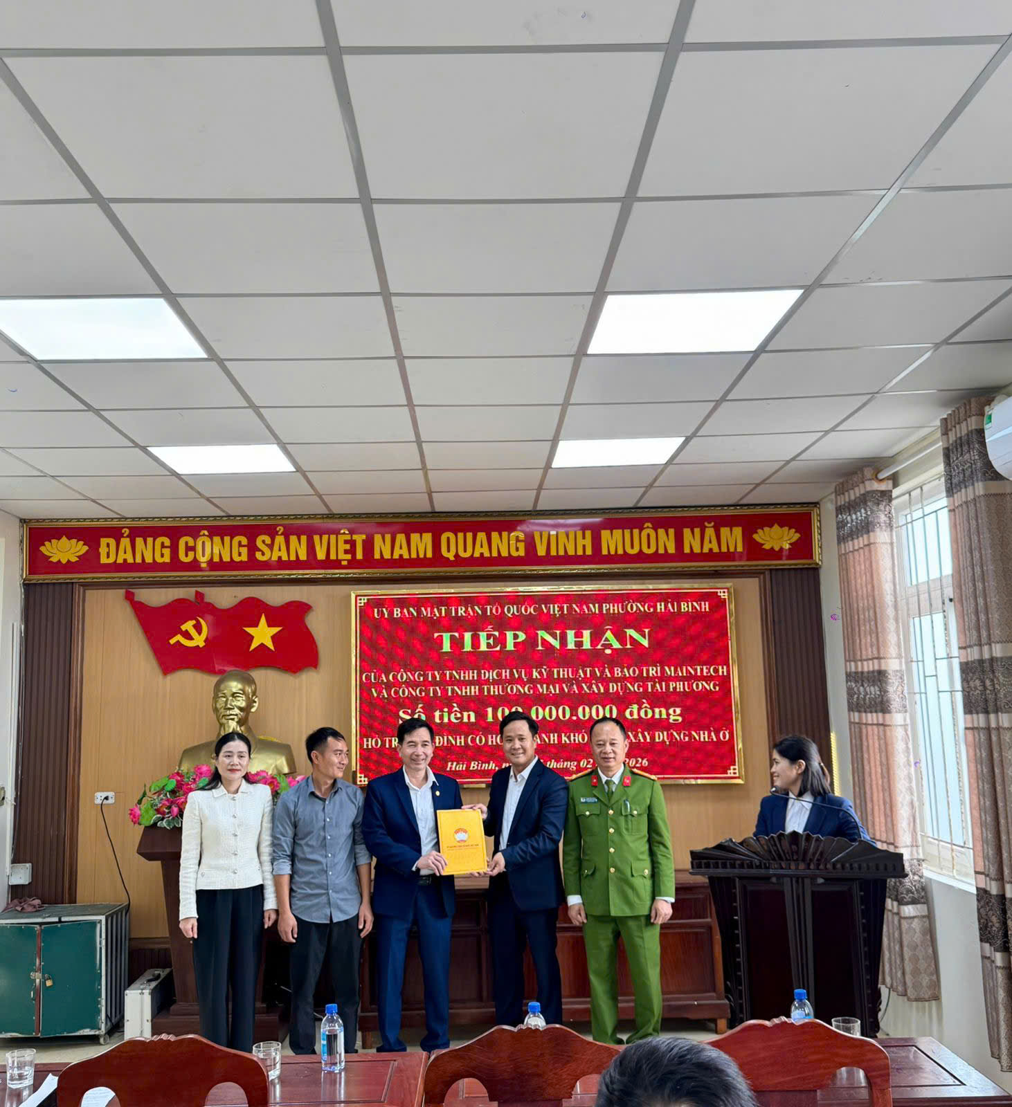 Sáng ngày 5/02/2026, tại phòng họp của Cơ Quan Đảng ủy- MTTQ Việt Nam phường Hải Bình đã tổ chức Chương trình nhận tài trợ của Công ty TNHH dịch vụ kỹ thuật và Bảo trì MAINTECH và Công ty TNHH Thương mại và Xây dựng Tài Phương.