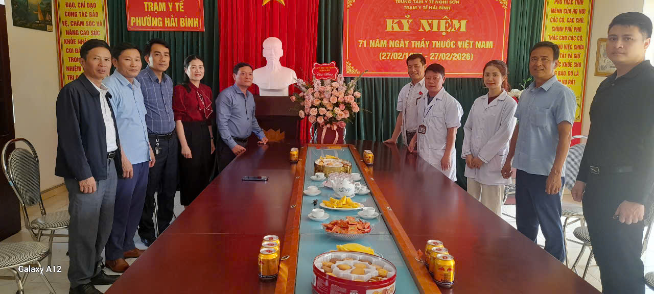 Nhân kỷ niệm 71 năm ngày thầy thuốc Việt Nam (27/2/1955 – 27/2/2026), chiều ngày 25/2, Đoàn công tác của Thường trực đảng uỷ phường Hải Bình do đồng chí Nguyễn Quốc Đạt, Bí thư đảng uỷ, chủ tịch HĐND phường làm trưởng đoàn đã đi thăm và chúc mừng cán bộ, y, bác sỹ 3 trạm y tế: Mai Lâm, Hải Bình và Tĩnh Hải phường Hải Bình. Cùng tham gia với đoàn có đồng chí Dương Thị Hằng, phó Bí thư Thường trực đảng uỷ phường; đồng chí Nguyễn Như Dũng, uỷ viên Ban Thường vụ đảng uỷ, phó chủ tịch UBND phường Hải Bình, đồng chí Chánh văn phòng Đảng uỷ và lãnh đạo phòng Văn hoá-xã hội, Trung tâm cung ứng dịch vụ công.