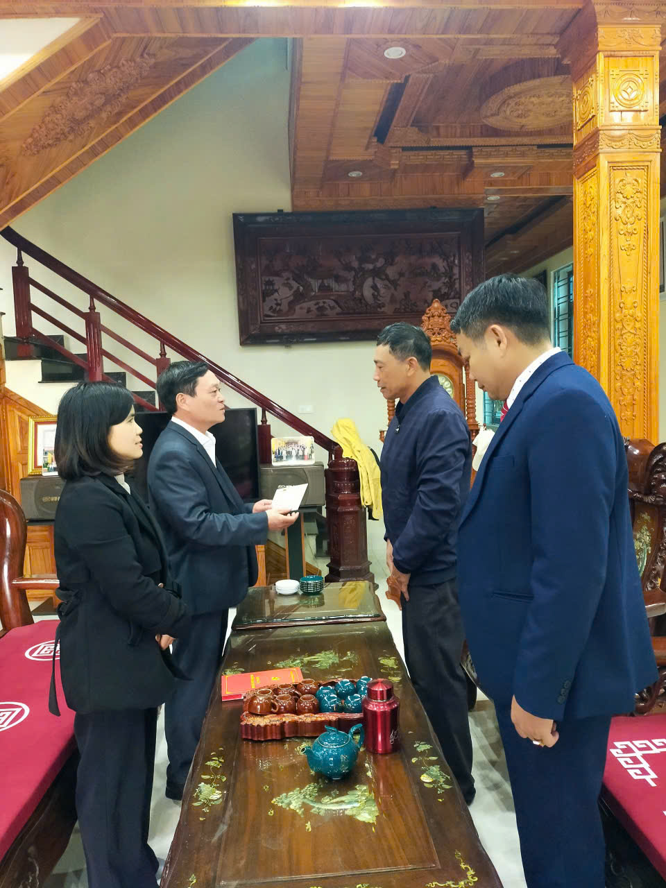 Đồng chí Bí thư đảng uỷ thăm, tặng quà các gia đình chính sách.
